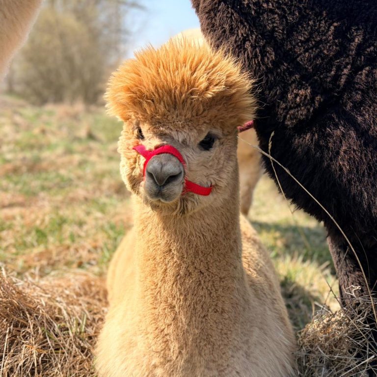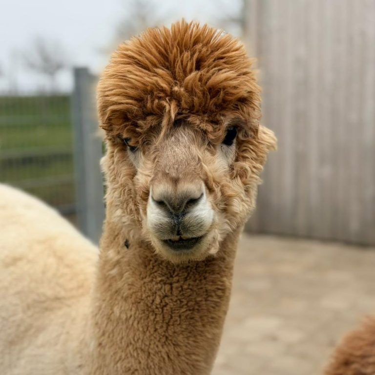 Sepp wurde 2022 geboren und trägt die Farbe Fawn. Er ist eher vorsichtig und gegenüber Menschen zunächst etwas distanziert, doch in der Herde fühlt er sich sehr wohl – besonders an der Seite seines Freundes Gustav.